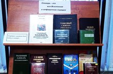 В рамках проведения Всероссийского словарного урока в библиотеке гимназии была организована зав. библиотекой Сагдеевой Д.Н. выставка словарей «Словарь – это Вселенная в алфавитном порядке». Проведена «Беседа у книжной полки» по работе со словарями разных типов и использование их в образовательном процессе.