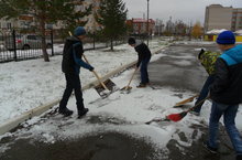 Сегодня, учащиеся 7 А класса, взявшись вновь за лопаты, потому что за ночь выпал снег, вышли на очередной субботник.