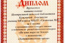Под таким названием прошел муниципальный конкурс чтецов в Центральной детской библиотеке. Ученица 8 В класса Кузьмина А. (учитель Хайруллина С.В.) заняла 1 место в номинации «Художественное слово».