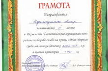 Идиятуллин Амир, ученик 1А класса занял III место в Первенстве Чистопольского муниципального района по борьбе самбо на призы «Деда Мороза» среди мальчиков 2006-2007 г.р. в весовой категории 40 кг.