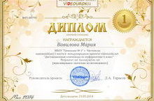 Победителями «Дистанционной олимпиады по информатике 6 класс» стали: Вавилова М., уч. 6Б кл., диплом 1 ст., Козлова Н., уч. 6В кл., диплом 1 ст. Победителем «Дистанционной олимпиады по информатике 9 класс» стала: Мозохина Е., уч. 9Б кл., диплом 2 ст. Победителем «Дистанционной олимпиады по информатике 10 класс» стала: Шамсутдинова Л., уч. 10А кл., диплом 3 ст. (кураторы Шамсутдинова Э.Р., Шамсутдинов Р.Ф.).