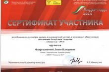 Фахрутдинова Л., ученица 10 кл. МБОУ «Гимназия №3» приняла активное участие в республиканском конкуре лидеров и руководителей детских и молодежных общественных объединений Республики Татарстан «Лидер года -2014».