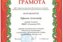Ефимов А., ученик 2г кл. стал лауреатом муниципального конкурса «Рисунок на компьютере» в номинации «Лучший рисунок в Paint» (руководитель: Аделева А.А.).