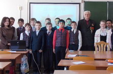В рамках Дня защитника отечества с учащимися 5В класса состоялась встреча с жителем блокадного Ленинграда Кольцовым Александром Степановичем.