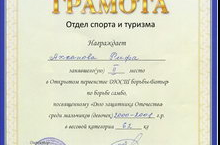 Поздравляем ученика 6 Б класса Ахсанова Рифа, занявшего II место в Открытом первенстве ДЮСШ борьбы «Батыр» по борьбе самбо, посвященному «Дню защитника Отечества» в весовой категории 62 кг.