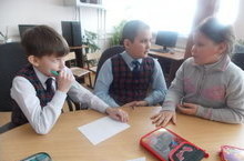 Увлекательную и, вместе с тем детально продуманную интеллектуальную игру «Крестики - Нолики» с применением ИКТ для учащихся 3-4-х классов гимназии провели члены НОУ «МИИГ» Сизова М. (9Акл.) и Улыбина А. (9А кл.).