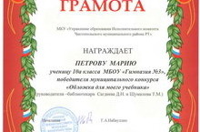 Поздравляем Петрову Марию, ученицу 10А класса, победителя муниципального конкурса «Обложка для моего учебника» (руководители: Сагдеева Д.Н., Шумилова Т.М.).