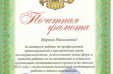 25 декабря МБОУ «Гимназия №3» была награждена почетной грамотой за активную работу по профилактике правонарушений и преступлений среди несовершеннолетних по итогам 2013 года.