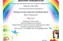 Итоги всероссийских творческих конкурсов на сайте Академии развития творчества «АРТ – талант» 14.12.2013