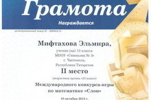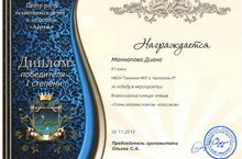 30 ноября 2013 года прошел Всероссийский конкурс чтецов «Осень глазами поэтов–классиков». Маннапова Диана, ученица 9г кл. награждена дипломом победителя I степени (куратор: Хайруллина С.В.).