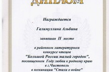 Галимуллина Альбина, ученица 11А кл заняла 2 место, Чехонина Катя, ученица 6В кл заняла 3 место, Маннапова Диана, ученица 8Г кл заняла 3 место, Кузьмина Настя, ученица 6В кл награждена дипломом за участие (руководитель: Хайруллина С.В.).