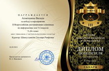 Ученицы 5Б класса Ахметшина Вилада, Вавилова Мария, Ткач Камила награждены дипломами победителя III степени за победу в олимпиаде по информатике (куратор Шамсутдинова Э.Р.).