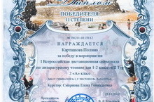 Учащиеся 2а класса приняли участие во Всероссийской олимпиаде. Карташова Полина награждена дипломом II степени, Пантелеева Ксения –дипломом IIIстепени (учитель: Смирнова Е.Г.)