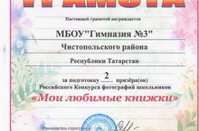 Сагдеев Рустем (руководитель: Сагдеева Д.Н.) и Долганов Павел (руководитель: Муратова Н.А.) отправили на конкурс фотографии любимых книг. Ребята заняли 3 место и награждены грамотами.