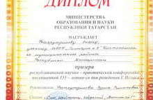 Фахрутдинова Лиана, ученица 9 в класса заняла II место в секции творческих работ (руководитель: Фатхутдинова Р.Р.)