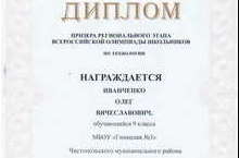 Поздравляем Иванченко Олега, ученика 9 класса с победой на региональном этапе всероссийской олимпиады школьников по технологии. Олег награжден дипломом призера (руководитель: Зиятдинов Р.М.).