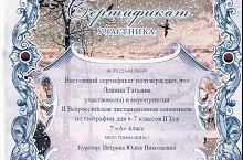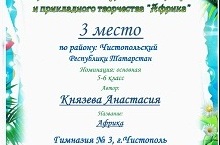 Дипломом за 3 место награждена Князева Анастасия, ученица 6 класса (педагог: Дмитриева Л.А.)