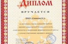 Коллектив гимназии награжден дипломом и ценным подарком за деятельное участие в решении проблем дорожно-транспортной безопасности детей.