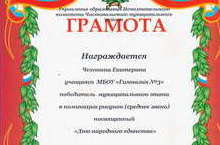 Грамота за активное участие в конкурсе «Мир без границ» 21.12.2012