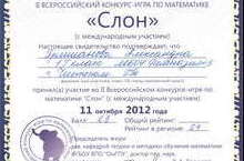Участие во II Всероссийском конкурсе-игре по математике "Слон" 07.12.2012