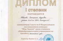 Всероссийского дистанционного конкурса «Мир знаний» среди учащихся общеобразовательных учреждений по предмету «Английский язык»