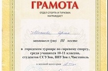 В городском турнире по гиревому спорту, среди учащихся 10-11 классов, студентов ССУЗов, ВВУЗов города Чистополь принимали участие ребята нашей гимназии