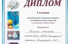 Дипломом I степени муниципальной олимпиады учащихся по изобразительному искусству в номинации «Композиция»