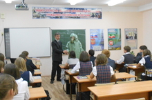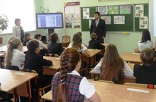 4.10.2012. учитель географии Седенкова Т.Ю. показала урок чистоты в рамках экологического проекта, на котором присутствовали начальник управления образования Набиуллин Г.А. и помощник депутата Смыкова В.В. Пещеров В.В.