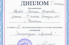 Ученицы 10а класса Галимуллина Альбина – 1 место, Загидуллина Миляуша – 2 место (руководитель Закирова Г.Н.), ученица 8в класса Фахрутдинова Лиана – 3 место (руководитель Фатхутдинова Р.Р.). Награждение победителей прошло в г. Арске 25 апреля 2012 года, где и руководители были награждены почетными грамотами за подготовку победителей в детском литературном конкурсе.