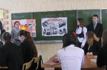 На уроке истории в 9Б классе учащиеся защищали творческие задания, отвечали на вопросы теста. Учитель истории Кривошеева Г.Б. познакомила учащихся с книгой «Солдаты ПОБЕДЫ», в которой рассказывается о подвигах чистопольцев на полях сражения и в тылу в годы ВОв.