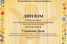 Наша воспитанница награждена - Диплом участника Всероссийского конкурса рисунков «Наследие земли русской» , руководитель – Мусина Раушания Иосаровна.