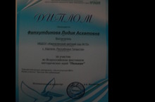 Диплом за 1 место по району :Чистопольский Республики Татарстан