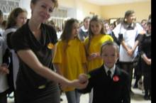 В рамках данной акции в День учителя члены студии «Основы лидерства» под руководством Заишловой В.В. вручили каждому учителю и не только учителю, но и каждому , кто собирается поступить в педагогические учебные заведения смайлики с поздравлениями и пожеланиями. А инициатором идеи была Салахова Адиля.