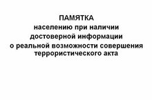 Памятка населению при наличии достоверной информации о реальной возможности совершения террористического акта.............