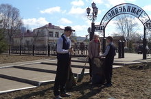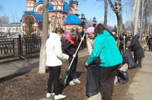 В рамках "Весенней недели добра" учащиеся школы убирались на территории сквера "Умиление".