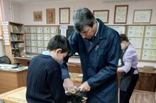 Учитель-дефектолог Тихонов Е.В. провел открытый урок по слесарному делу в 7 классе на тему: "Нарезание резьбы вручную. Резьбовые соединения. Детали резьбовых соединений". Целью данного урока было: ознакомить учащихся с видами резьбовых соединений, видами резьбы, элементами резьбы, инструментами для нарезания резьбы, овладение приемами нарезания резьбы. Структура урока была рациональной для решения вышеназванной цели, так как очень полно раскрывает содержание темы, соблюдая принцип доступности. Количество времени, отведенное на этапы урока педагог использовал разумно. На начальном этапе урока учащиеся повторили какие инструменты нужны для нарезания резьбы вручную, записали термины в словарь, ответили на вопросы педагога "Что такое разъемная плашка (неразъемная плашка, плашкодержатель, резьбомер и т.д.)?" Учащиеся назвали виды болтов и гаек, и дифференцированно отобрали крепежные изделия по их наименованию. Для изучения нового материала Евгений Владимирович выбрал следующее сочетание методов: словесный (рассказ, беседа, опрос); наглядный (обучающие стенды, инструменты, крепёжные изделия); практический метод (снятие фаски с концов шпильки, нарезание резьбы на шпильку с двух концов на длину 20мм). На уроке Евгений Владимирович старался поддерживать доброжелательную атмосферу, уважительно относиться к ученикам, их интересам. Обратная связь "учитель-ученик" и текущий контроль имели место в процессе беседы, а также в ходе выполнения практического задания. Задачи, поставленные для обучающихся, были выполнены.