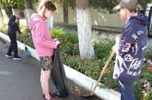 Сегодня прошла уборка территории школы.