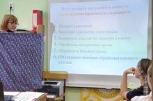 Учителем трудового обучения Балясниковой М. В. проведен открытый урок в 7 классе на тему "Пошив наволочки с клапаном".