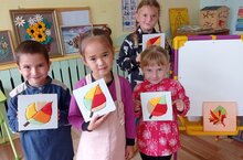 В рамках недели педагогического мастерства педагог познакомил детей с техникой лоскутного творчества "кинусайга" - создание лоскутного панно на пенопласте.
