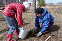 В рамках акции, учащимися и педагогами школы на територии были высажены саженцы сосен.