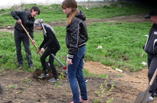 Учащиеся 7 и 8 классов очистили территорию школьного сада от поросли.