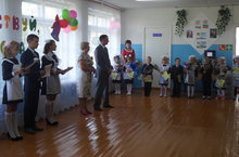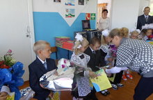 На торжественной линейке поздравили с новым учебным годом и вручили подарки первоклассникам участники акции: коллектив школы, совет сельского поселения, ООО "Родник".