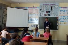 В рамках месячника безопасности в 5 классах прошла встреча с инспектором ГИБДД Воляковым Владиславом Владимировичем. В ходе беседы дети ознакомились с правилами дорожного движения, с правилами управления транспортного средства, в частности, велосипеда, узнали о причинах аварий на дорогах и мерах безопасности