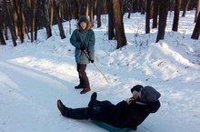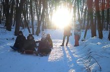 4 января 6 в класс совершил прогулку в лес. Погода стояла солнечная и не холодная, как раз подходящая для катания на горке. Ребята и родители принесли с собой ледянки, на которых катались и дети и родители; захватили горячий чай, чтобы согреться.
