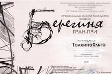 Поздравляем Толкину О., получившую Гран-при в Региональном конкурсе по искусству графики "Берегиня"!