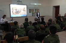 На встрече присутствовали заместители директора школы И.Ф.Якубович, В.Л.Бахадирова, учащиеся 5 «а», 6 «а» классов, офицеры и приглашённые гости – ученицы 11 класса МБОУ «Лицей № 1», члены Военно-патриотического поискового отряда "Выстрел" Л.Хафизова и Ю.Квашнина.