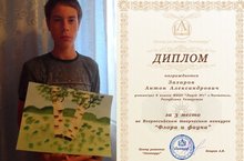 В июне ученик 8 «Б» класса Захаров Антон принял участие занял третье место во Всероссийском творческом конкурсе «Флора и фауна». Данный конкурс проводился для воспитанников дошкольных учреждений любого типа и вида, для учащихся 1 - 11 классов образовательных учреждений любого типа и вида. Работа Антона называется «Березы-символ России», рисунок выполнен по нетрадиционной методике С.В. Погодиной.