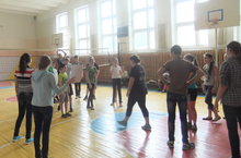Как и всегда день начался с утренней разминки. После завтрака мальчики играли в футбол, а девочки в волейбол.