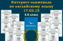 Двенадцать Дипломов в интернет-олимпиаде по английскому языку (МетаШкола, г.Санкт-Петербург) за один только вечер получили учащиеся 6 Б класса ! Поздравляем ПОБЕДИТЕЛЕЙ и их учителей - Эльвиру Ильдусовну Гарифуллину и Алсу Рафиковну Филиппову - с замечательной ПОБЕДОЙ ! Так держать !!!
