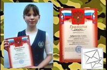 Алина Доброхотова награждена Грамотой за 2 место в муниципальном творческом конкурсе "Письмо солдату". 11.11.2013